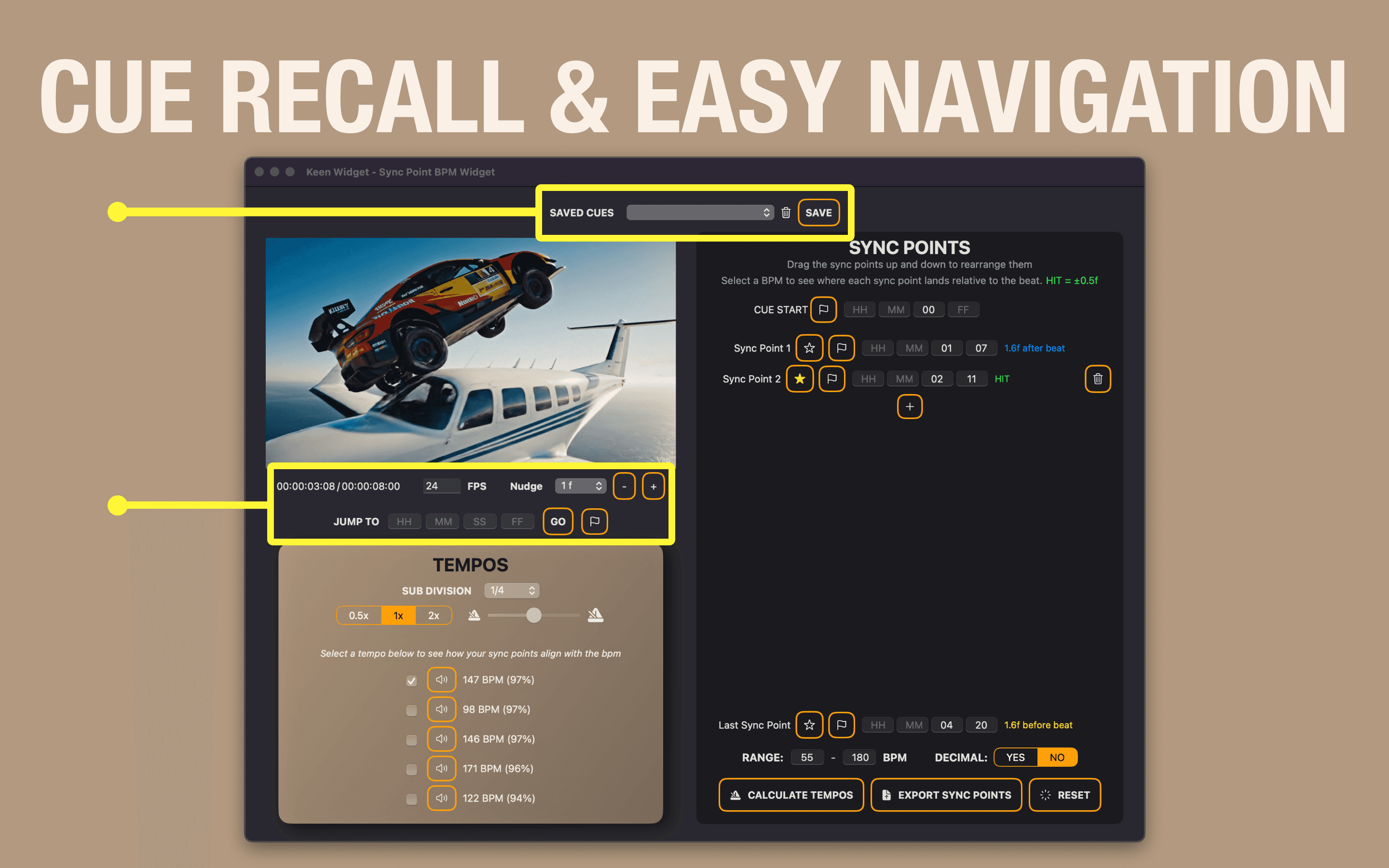 Cue Management: Save and load your sync point configurations for easy cue recalls